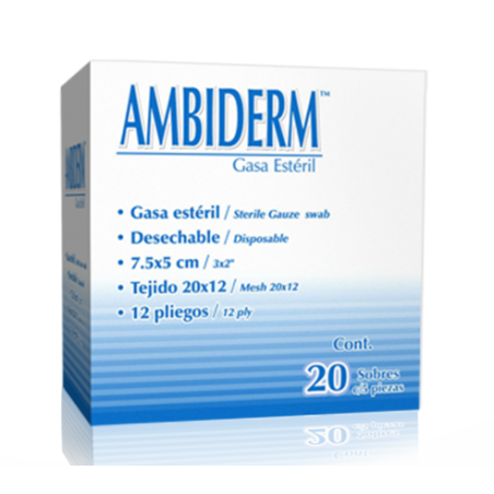El producto Gasa Estéril 7.5Cmx5Cm 12 Pliegos de la marca Ambidermes una gasa de alta calidad y esterilidad, diseñada para ser utilizada en procedimientos médicos y quirúrgicos. Está fabricada con materiales suaves y absorbentes que garantizan una excelente absorción de líquidos y secreciones, evitando la contaminación y promoviendo una adecuada cicatrización.
