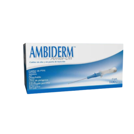 Catéter IV Ambi-On Sin Alas y Sin Puerto de Inyección 20G PTFE CAJA CON 100 PIEZAS